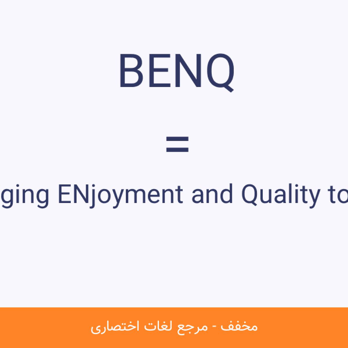 مخفف BENQ Bringing ENjoyment and Quality to life شرکتی بزرگ در زمینه ساخت تجهیزات کامپیوتریBenQ به معنی «آوردن شادی و کیفیت در زندگی» می باشد.مشاهده نسخه کامل