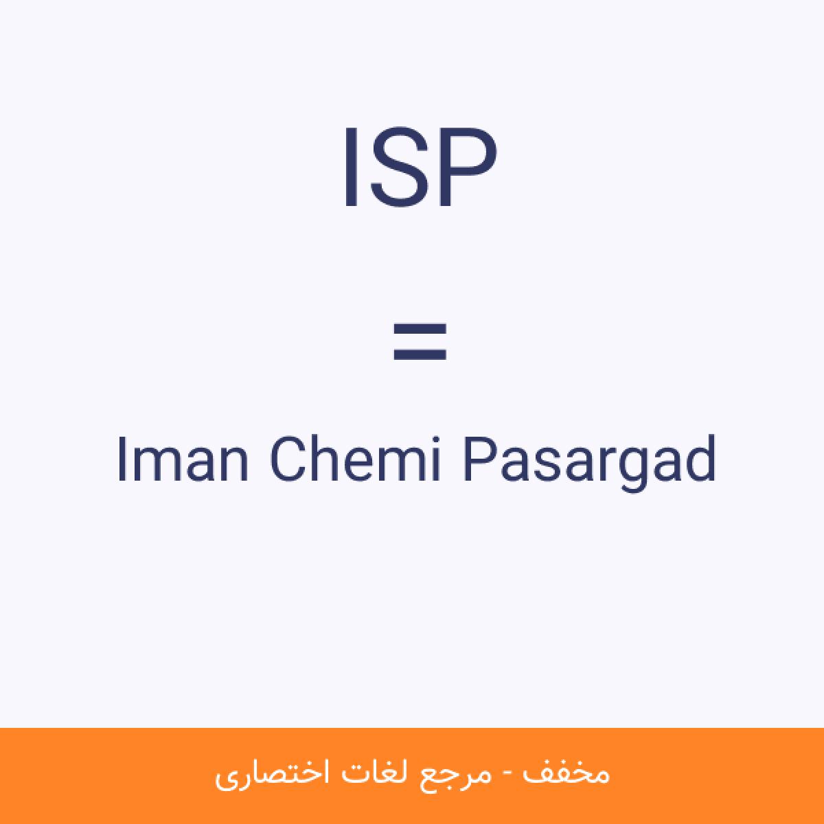 مخفف ISP Iman Chemi Pasargad واردات و صادرات انواع کالا.خریدوفروش و تولید و بسته بندی انواع مواد نفتی.بازیافت ضایعات نفتی.لایروبی مخازن نفتیترخیص کالا.پیمانکاری صنایع.تاسیسات.محیط زیست.آب و فاضلاب.مختصری از زمینه فعالیت شرکت می باشد.مشاهده نسخه کامل