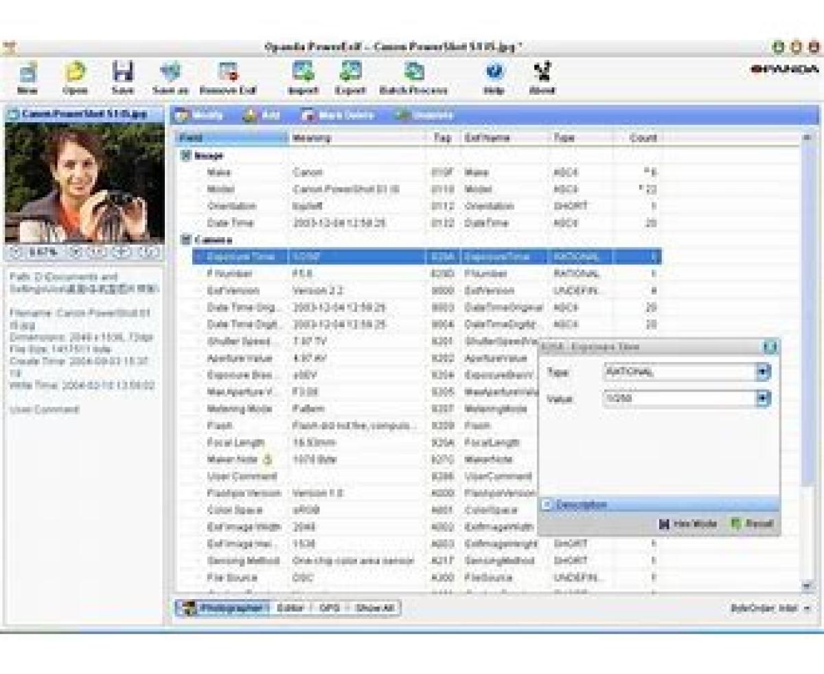 فرادادههایی که در Exif استفاده میشوند شامل موارد زیر هستند :