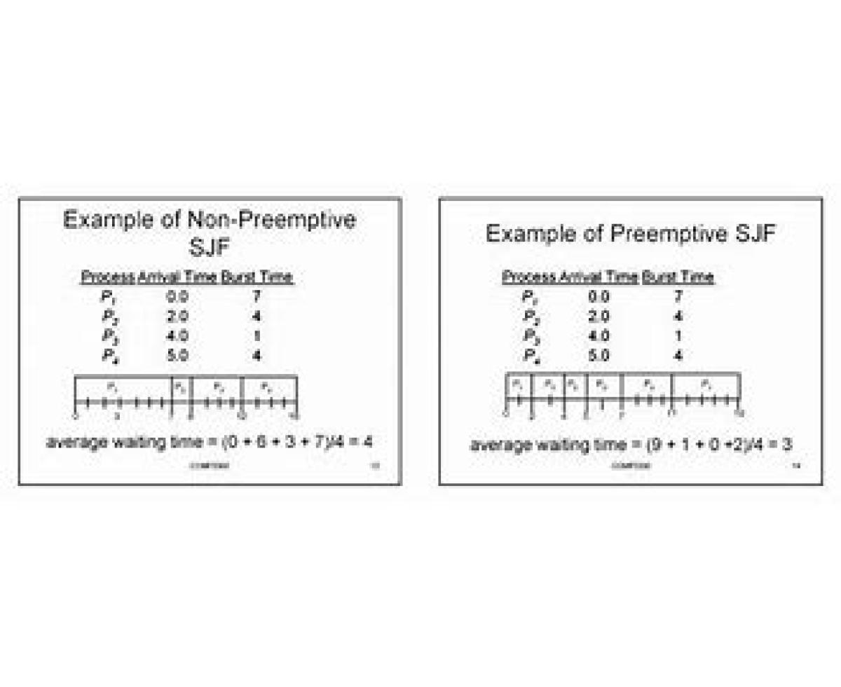 در الگوریتم SJF که روشی انحصاری است cpu به پردازشی داده می شود که کمترین زمان اجرا را دارد.در این الگوریتم گرسنگی (starvatoin) وجود دارد.