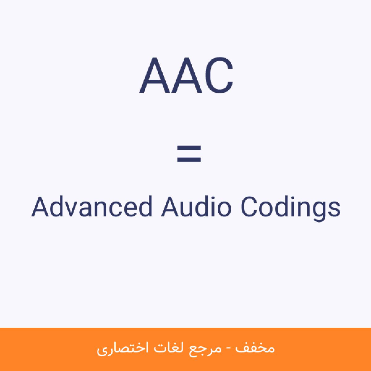 مخفف AAC Advanced Audio Codings AAC یک نوع فرمت فایل های صوتی می باشد که عموماً در اینترنت از آن استفاده می شود و تقریباً یک نوع جایگزین برای فایل های MP3 می باشد که در عین حال کیفیت بالا و حجم کمی دارد انواع جدید آن AAC+ و AAC++ می باشد.مشاهده نسخه کامل