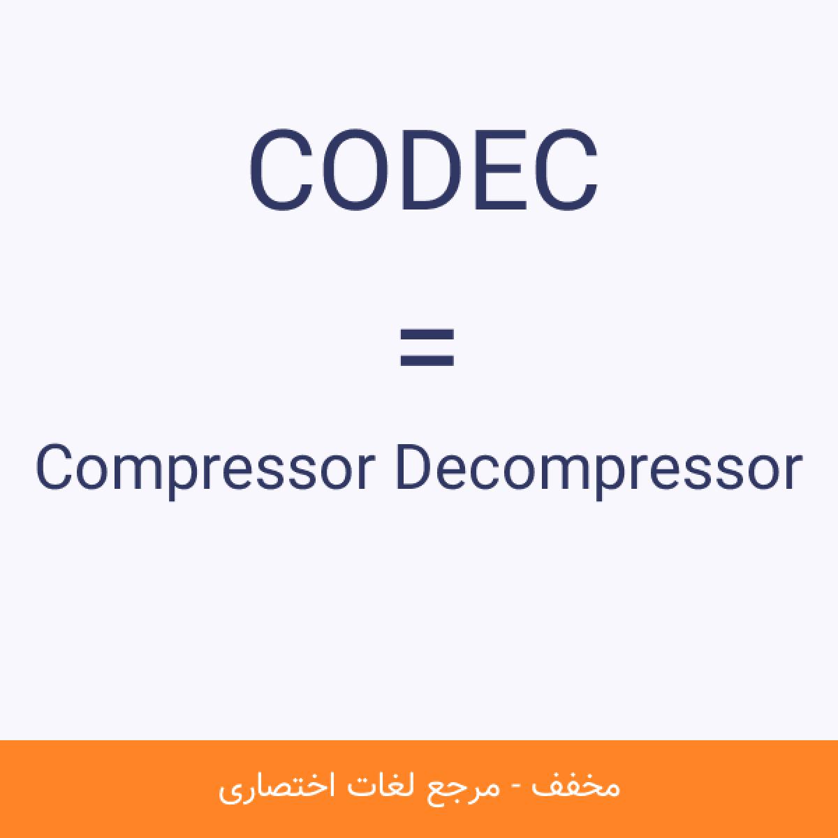 مخفف CODEC Compressor Decompressor كوتاه شده عبارت Compressor/Decompressor ، كدك فناورى است براى فشردهسازى و بازسازى داده ها.كدكها مىتوانند در نرمافزار و یا سختافزار پیاده شوند. برخى از كدكهاى مشهور كامپیوتر، MPEG، Indeo و Cinepak است.مشاهده نسخه کامل