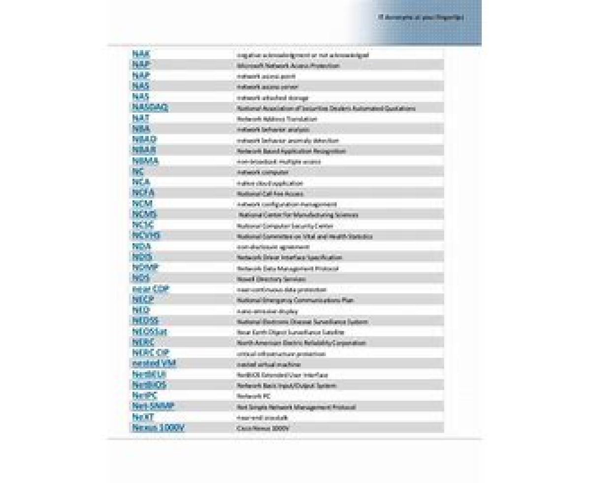 مخفف NAC Negative Acknowledgment NAC در ارتباطات ، یک کد کنترلی ASCII 21 است که توسط کامپیوتر دریافت کننده فرستاده می شود تا اعلام کند که داده به صورت درست نرسیده است و باید دوباره فرستاده شود.مشاهده نسخه کامل