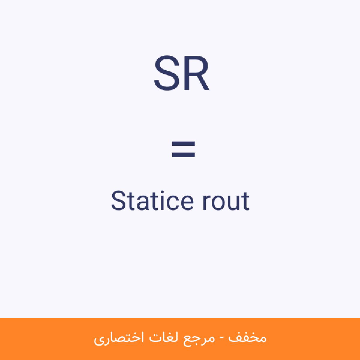 مخفف SR Statice rout به مسیر یابی دستی در شبکه .. طوری که یک روتر تمام روتر ها را بشناسد و ادمین شبکه تمام روتر ها را به صورت دستی به هم بشناسد این نوع مسیر یابی اولویت 1 و بالاتری از سایر مسیر یابی ها در شبکه دارد .سایر پروتکل های مسیر یابی RIDOSPFEIGRPمشاهده نسخه کامل