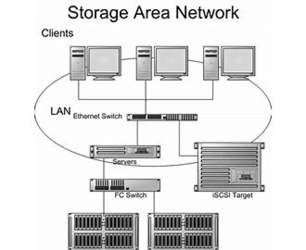 در سیستمهای کامپیوتری، برای اتصال دستگاههای ذخیره سازی به سرورها، به صورت از راه دور (Remote)، از مفهومی با نام شبکه ذخیره سازی(SAN) استفاده میشود. (مانند آریه دیسکها (Disk Array)) و به صورت محلی برای سیستمعامل سرور مربوطه نمایش داده میشود.