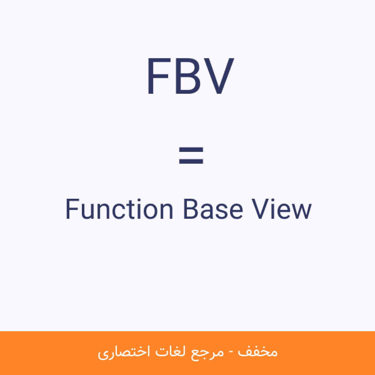 مخفف FBV Function Base View FBV ها در بسیاری از زیان های برنامه نویسی بک اند به کار رفته و روشی برای طراحی بازخورد صفحات وب است.مشاهده نسخه کامل