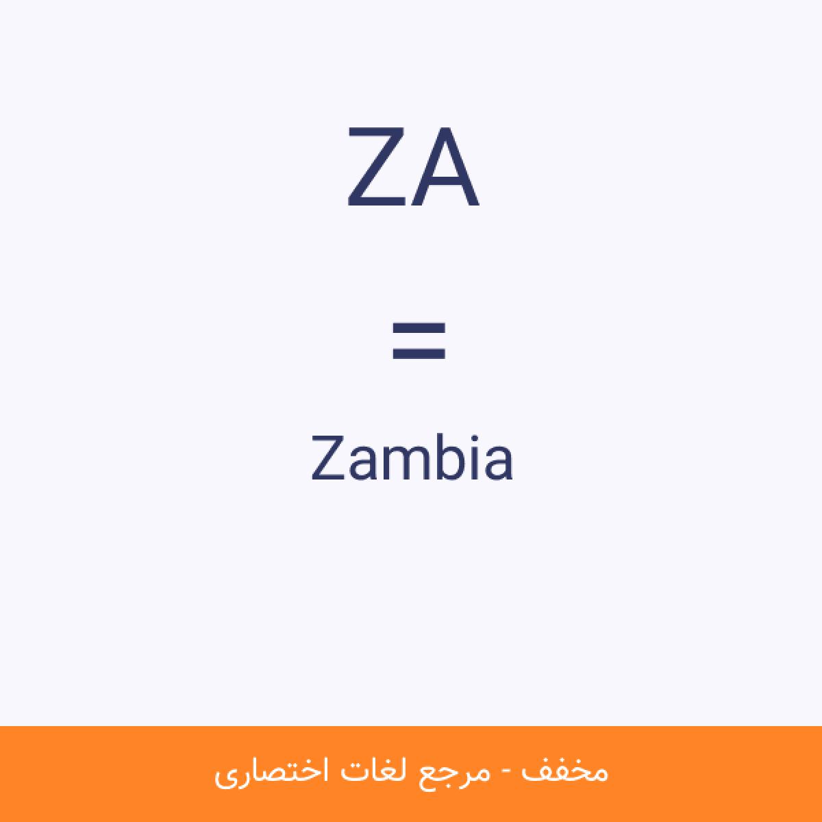 مخفف ZA Zambia زامبیا یا زَمبیا با نام رسمی جمهوری زامبیا (Republic of Zambia) کشوری است واقع در مرکز متمایل به جنوب آفریقا، جنوب جمهوری دموکراتیک کنگو، شمال زیمبابوه و شرق آنگولا. پایتخت زامبیا شهر لوساکا است.مشاهده نسخه کامل