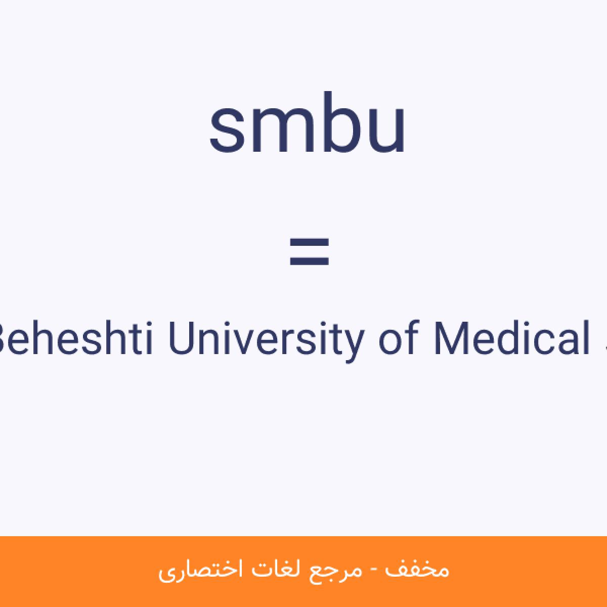 مخفف smbu Shahid Beheshti University of Medical sciences دانشگاه علوم پزشکی و خدمات بهداشتی درمانی شهید بهشتی یکی از دانشگاههای دولتی ایران و تحت پوشش وزارت بهداشت، درمان و آموزش پزشکی در استان تهران است.مشاهده نسخه کامل