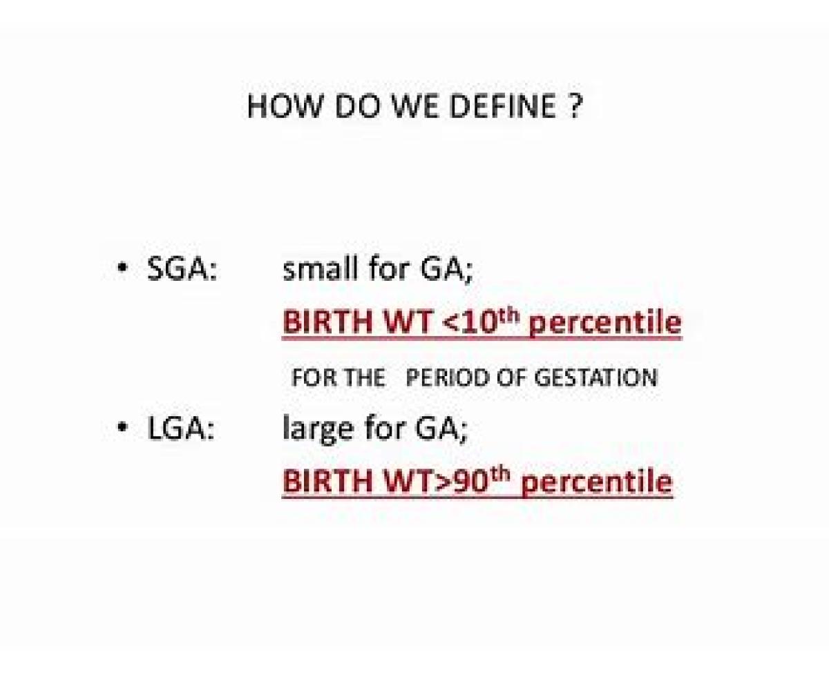 مخفف SGA Small for gestational age کوچک برای سن باروری (SGA) بچههایی هستند که وزن تولدشان زیر ۱۰ درصد وزن جامعه در آن سن باروری باشد.مناسب برای سن باروری (AGA) بچههایی هستند که وزن تولدشان بالای ۱۰ درصد وزن جامعه در آن سن باروی و زیر ۹۰ درصد وزن جامعه در آن سن باروری باشد.مشاهده نسخه کامل