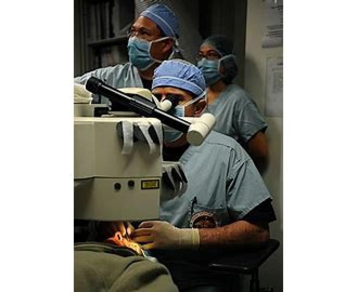 در هنگام عمل جراحی، با ماده ضد عفونیکننده (بتادین) پلکها و دور چشمها ضدعفونی میشوند. قطرههای بیحسی و آنتی بیوتیک به داخل چشم ریخته و بیمار روی تخت در مقابل میکروسکوپ دراز میکشد.