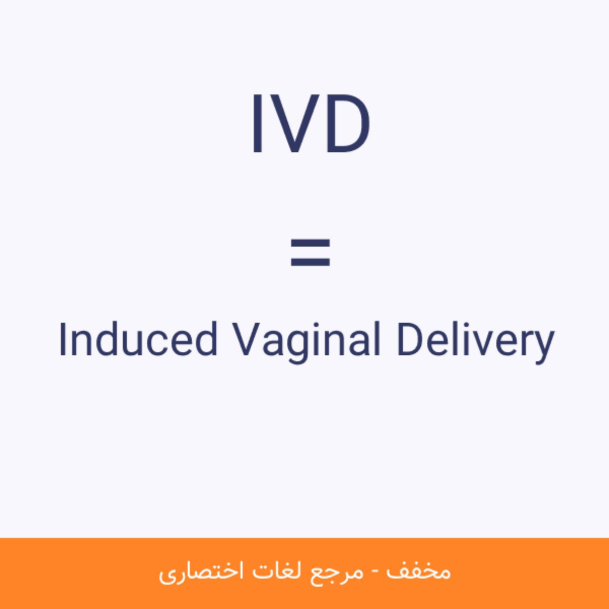 مخفف IVD Induced Vaginal Delivery زایمان طبیعی القایی (IVD) نوعی زایمان است که شامل استفاده از تکنیکهای تهییجکننده یا القاءکننده زایمان و داروها میشود.مشاهده نسخه کامل