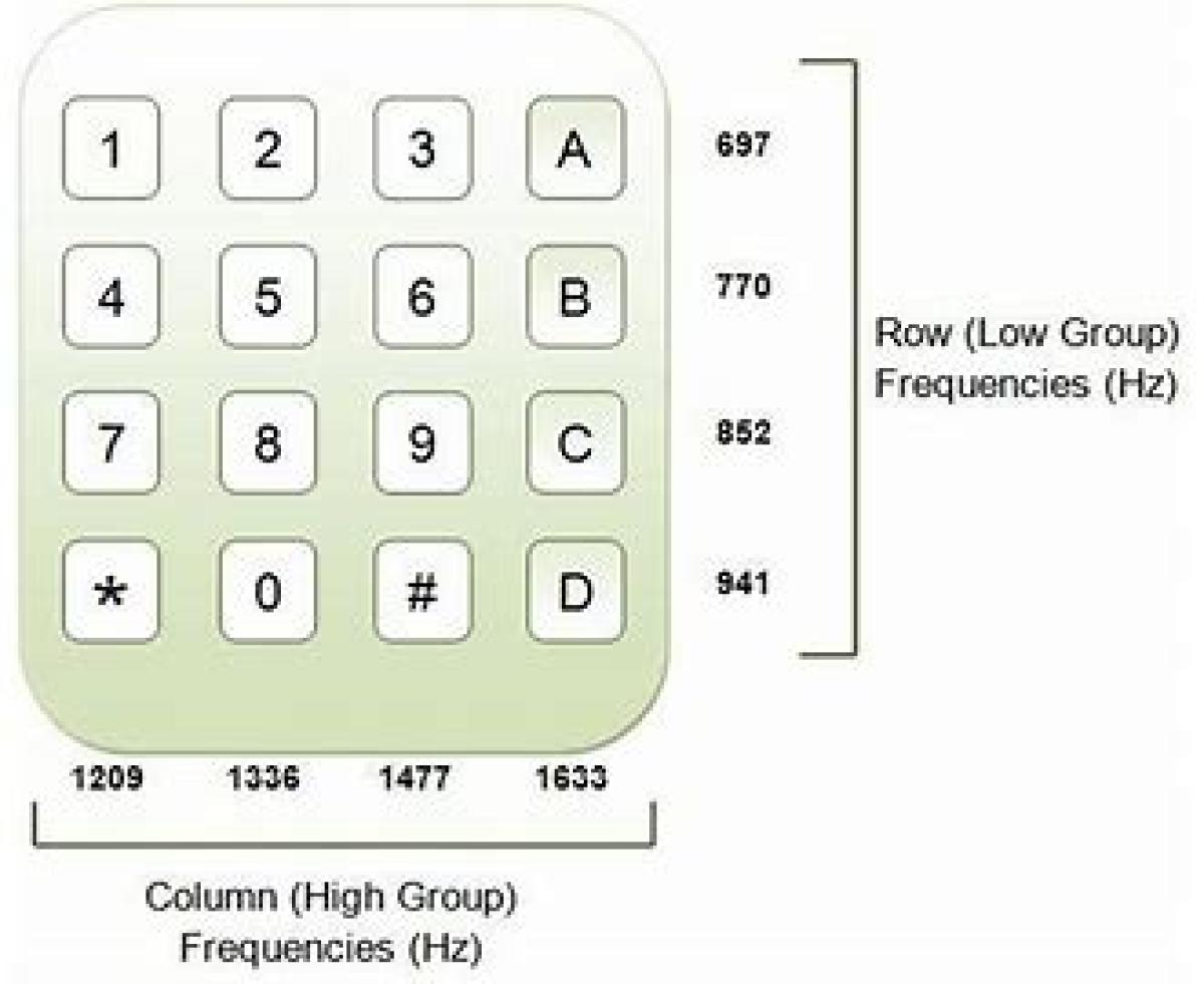 DTMF استاندارد جهانی برای آهنگ های شنیدنی است که رقم های روی صفحه کلید تلفن را نشان می دهد . با تلفن های کابل زمینی دکمه ای ( touch- tone ) ، فشار دادن یک کلید روی صفحه شماره ، صدای DTMF مربوطه برای آن کلید را ایجاد می کند . بنابراین سیستم تلفن کابل زمینی می تواند آن صدا را بشنود و رمزیابی کند و بدین طریق تعیین نتماید که کدام کلید فشار داده شده است تا شماره گیری کند .