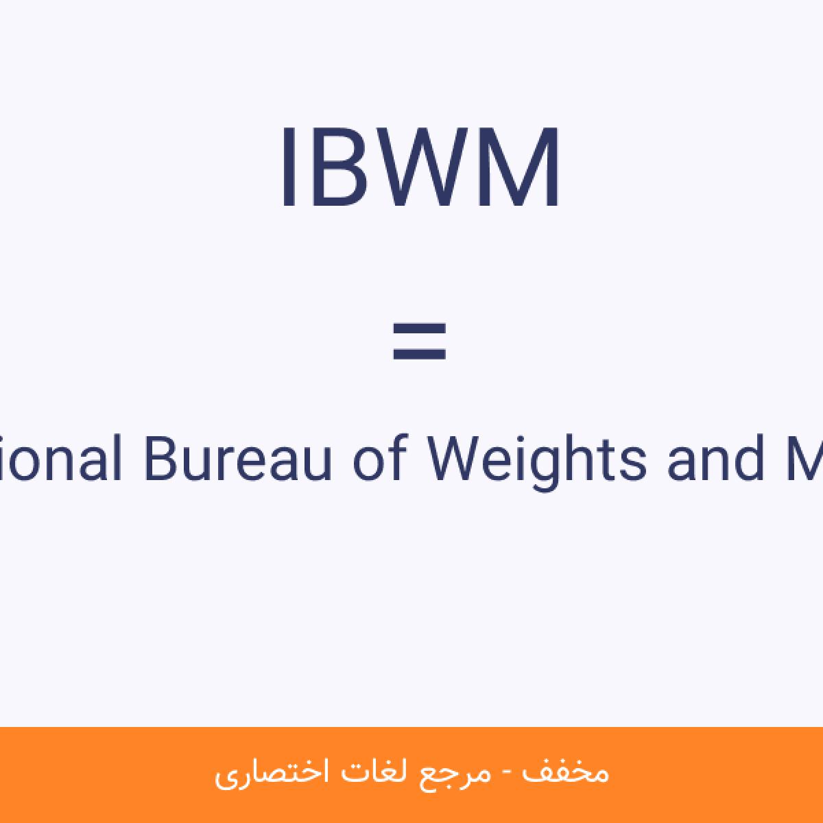 مخفف IBWM International Bureau of Weights and Measures اداره بینالمللی اوزان و مقیاسها، (IBWM)، یکی از سه سازمانی است که برای نگهداری از سیستم استاندارد بینالمللی یکاها (SI) پایهگذاری شدهاند.مشاهده نسخه کامل
