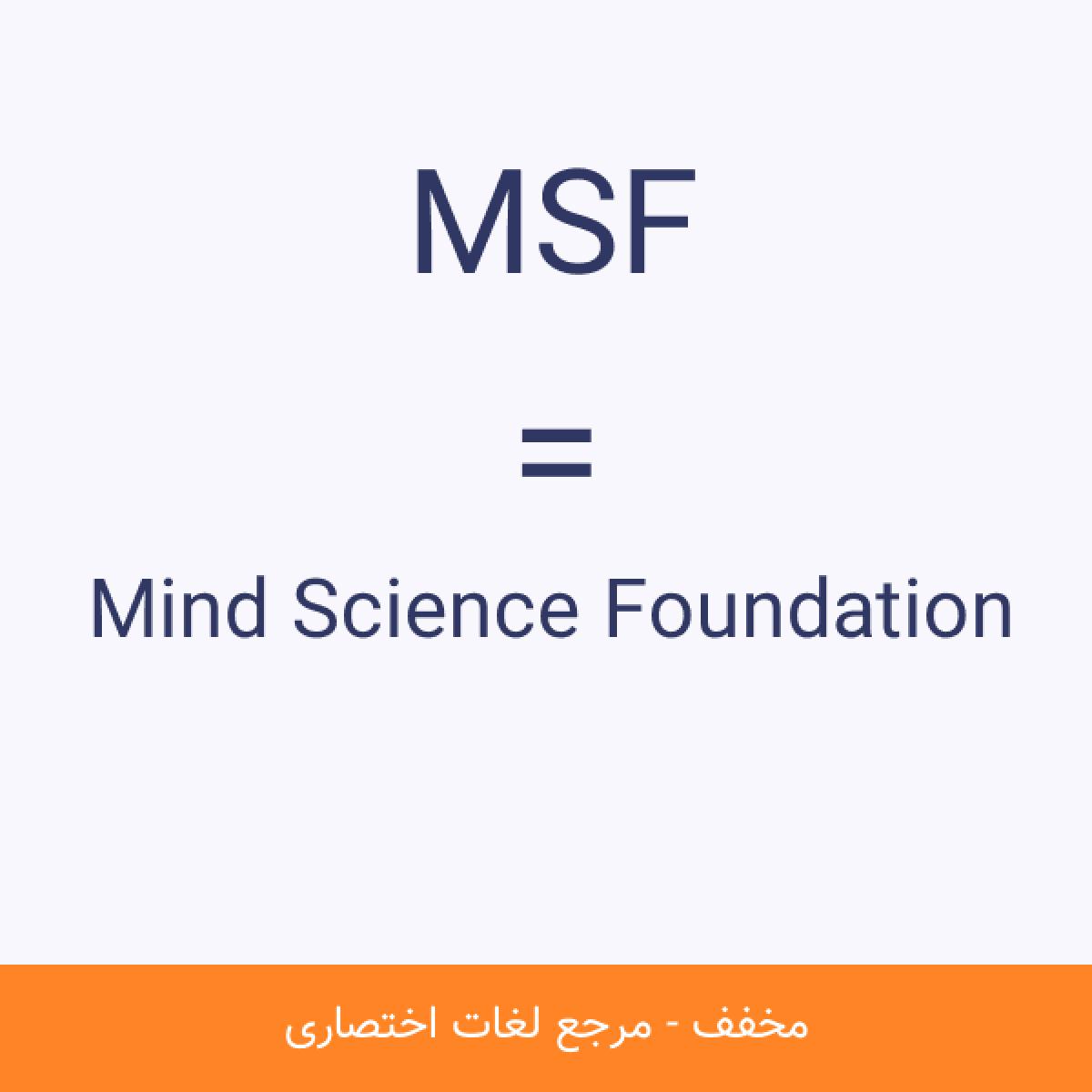 مخفف MSF Mind Science Foundation بنیاد علوم ذهنی (به انگلیسی: Mind Science Foundation) نام یک موسسه پژوهشی است.این موسسه بزرگترین حامی مالی تحقیقات علوم ذهنی و خودآگاهی در ایالات متحده آمریکا است.مشاهده نسخه کامل
