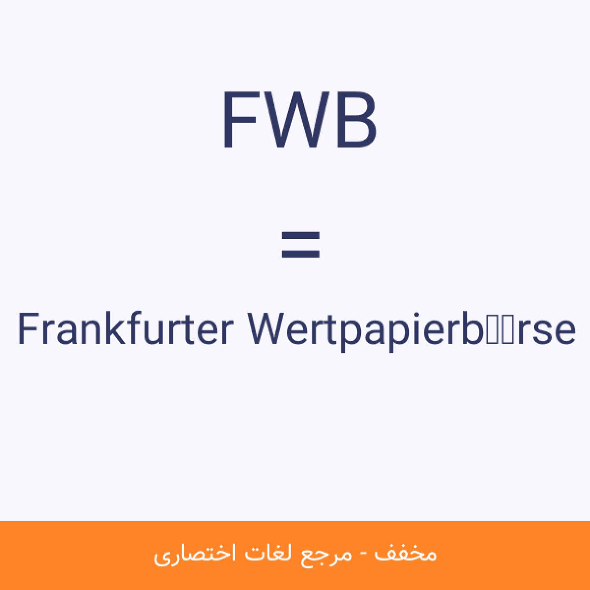 مخفف FWB Frankfurter Wertpapierbörse بورس سهام فرانکفورت (FWB) یکی از بازارهای بورس سهام است که از لحاظ سرمایه بازار، در رتبه دوازدهم در دنیا قرار دارد و در فرانکفورت آم ماین، آلمان واقع است و توسط دویچه بورزه اداره میشود.مشاهده نسخه کامل