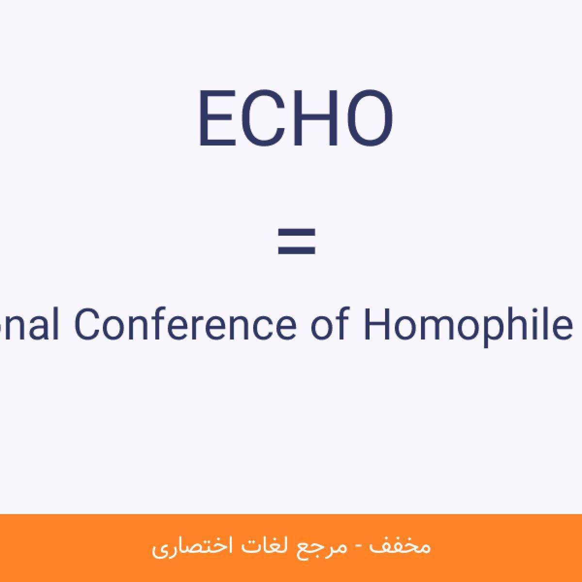 مخفف ECHO Eastern Regional Conference of Homophile Organizations کنفرانس منطقه ای شرق سازمانهای همجنسگرایانمشاهده نسخه کامل