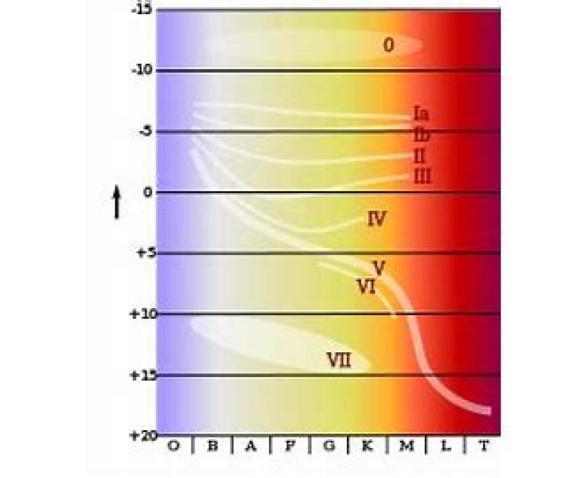 در آغاز قرن بیستم، اینار هرتسیرونگ و هنری نوریس راسل، به یک طریق، با حذف کردن فاصله در نورانیت، یعنی بر مبنای قدر مطلق، نموداری از یک گروه از ستارگان تهیه کردند. آن ها با تعیین کردن یک محور به عنوان دما و محور دیگر به عنوان قدر مطلق، دریافتند که نقاط نشانگر ستارگان در این نمودار، در یک نوار باریک جای می گیرند. این نوار، رشته اصلی خوانده می شود. در این نمودار دیده می شود که اکثرا، ستارگان نورانی تر، داغ ترند و ستارگان کم نورتر، سردتر. تعدادی از ستارگان، نورانی تر از آن ستارگان رشته اصلی هستند که همان دما را دارند. از این رو، این ستارگان استثنایی را غول می نامند و ستارگان باز هم نورانی تر از آن ها به ابرغول مشهورند. برخی از ستارگان نیز کم نورتر از آن ستارگان رشته اصلی هستند که همان دما را دارند. این ستارگان، کوتوله های سفید هستند. آن ها بسیار کوچکند و اندازه سیارات را دارند.