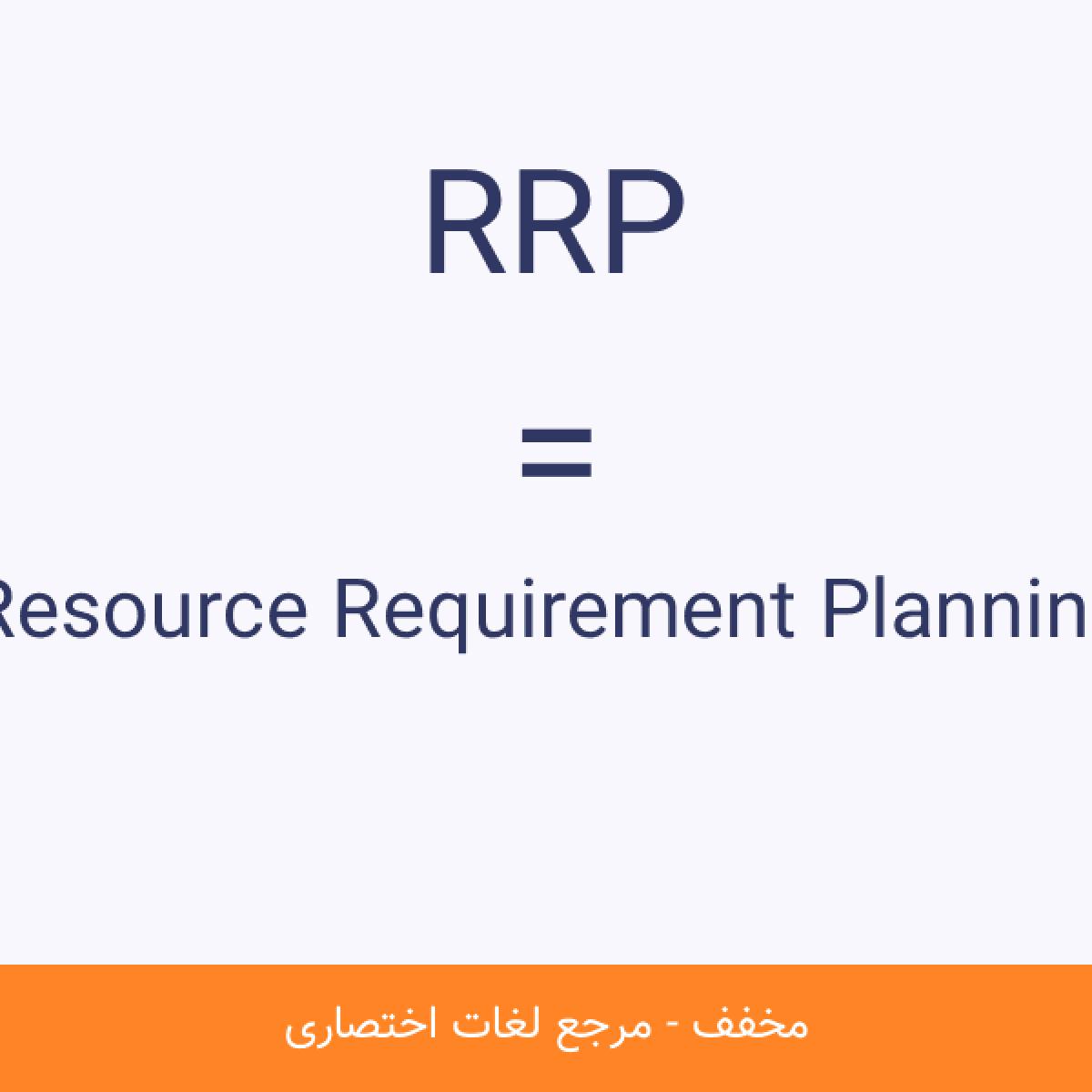 مخفف RRP Resource Requirement Planning برنامه ريزي ميزان منابع مورد نياز (RRP) براي تحقق برنامه توليد را محاسبه و سپس اين ظرفيت را با ظرفيت موجود مقايسه مي نمايد.اين برنامه ريزي به موازات برنامه ريزي توليد قرار دارد.مشاهده نسخه کامل
