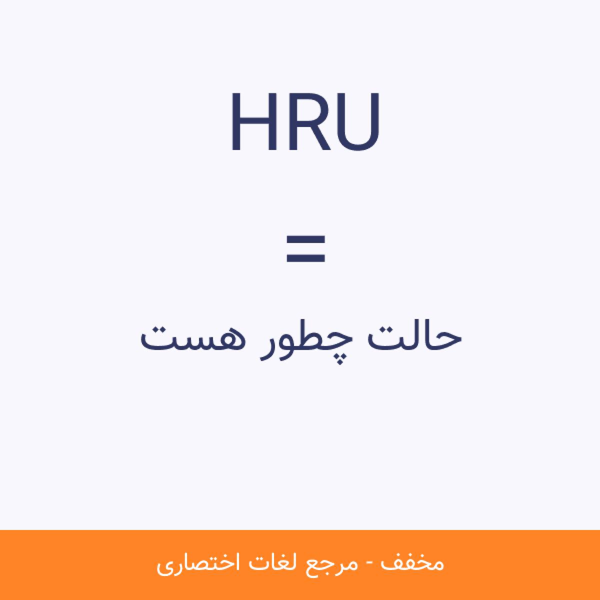 مخفف HRU حالت چطور هست کلمه HRU بیشتر در چت یا مسیج ها استفاده می شود. که به معنای حالت چطوره؟ می باشد.مشاهده نسخه کامل