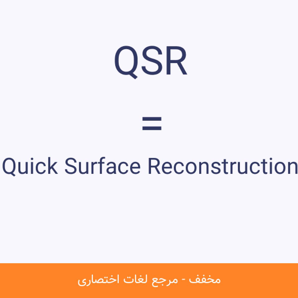 مخفف QSR Quick Surface Reconstruction محیط کاری (QSR) برای بازسازی سریع و آسان سطوح از روی دادههای خروجی ابر نقاط مورد استفاده قرار میگیرد. این محیط با توجه به نوع شکل ورودی، چندین روش مختلف برای بازسازی سطوح ارائه میدهد.مشاهده نسخه کامل