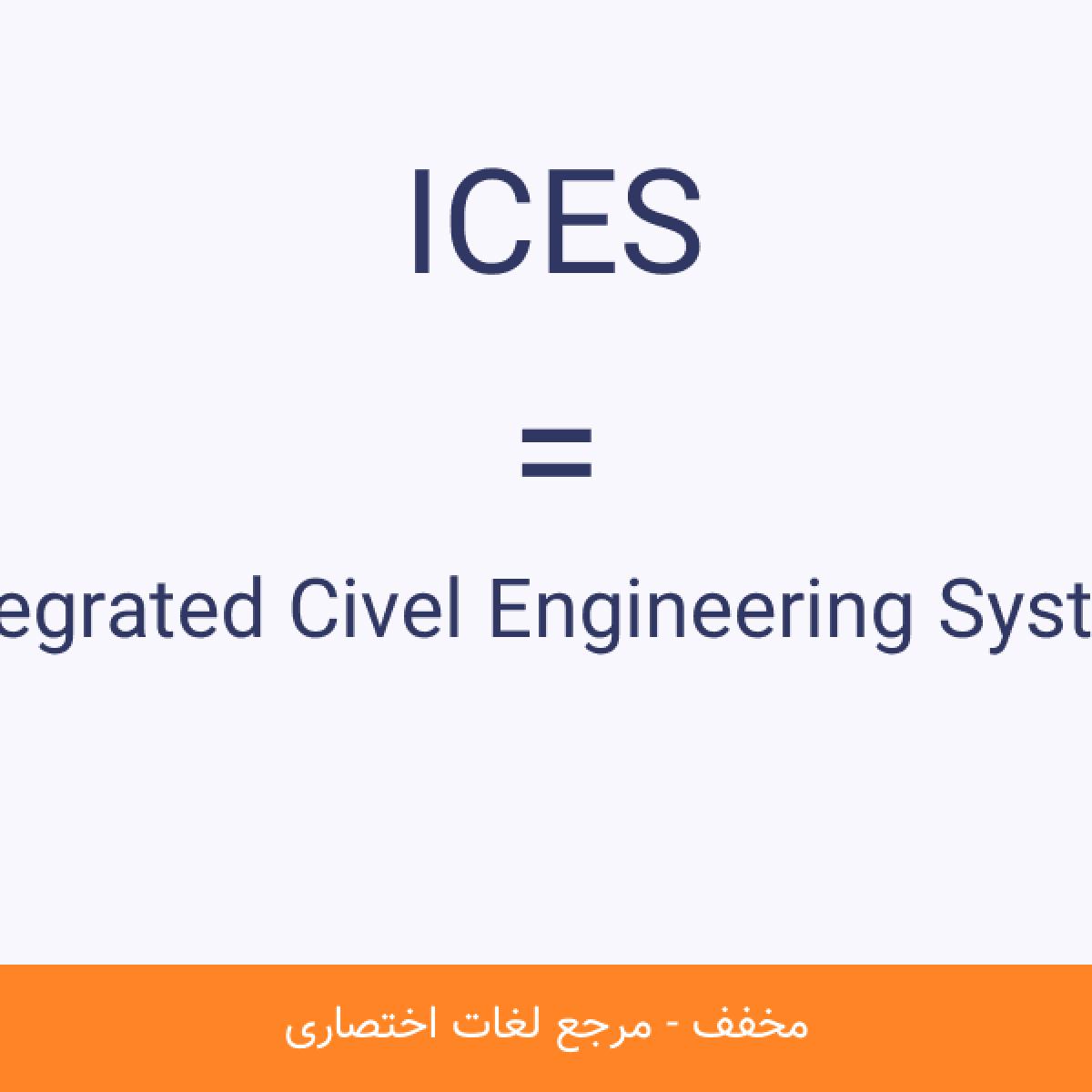 مخفف ICES Integrated Civel Engineering System سیستم مجتمع مهندسی عمران (ICES) سیستمی که برای کمک به مهندسان عمران در حّل مسائل مهندسی ، ساخته شده است. این سیستم شامل چندین سیستم مهندسی و زبانهای برنامهنویسی میباشد.مشاهده نسخه کامل