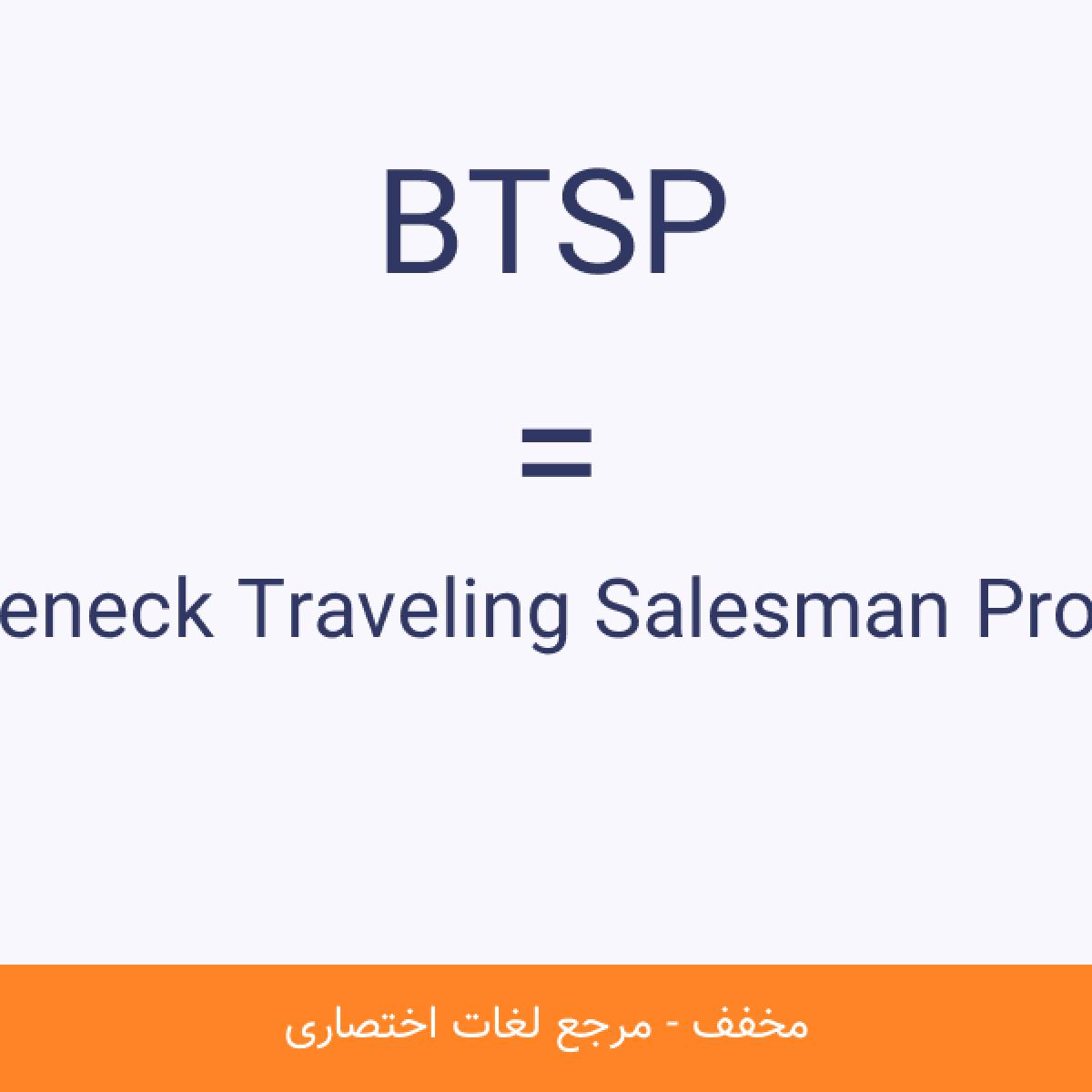 مخفف BTSP Bottleneck Traveling Salesman Problem مسئله تنگراه فروشنده دورهگرد (bottleneck TSP) مسئلهای بسیار کاربردی است که در یک گراف وزندار کموزنترین دور همیلتونی را میخواهد که شامل سنگینترین یال باشد.مشاهده نسخه کامل