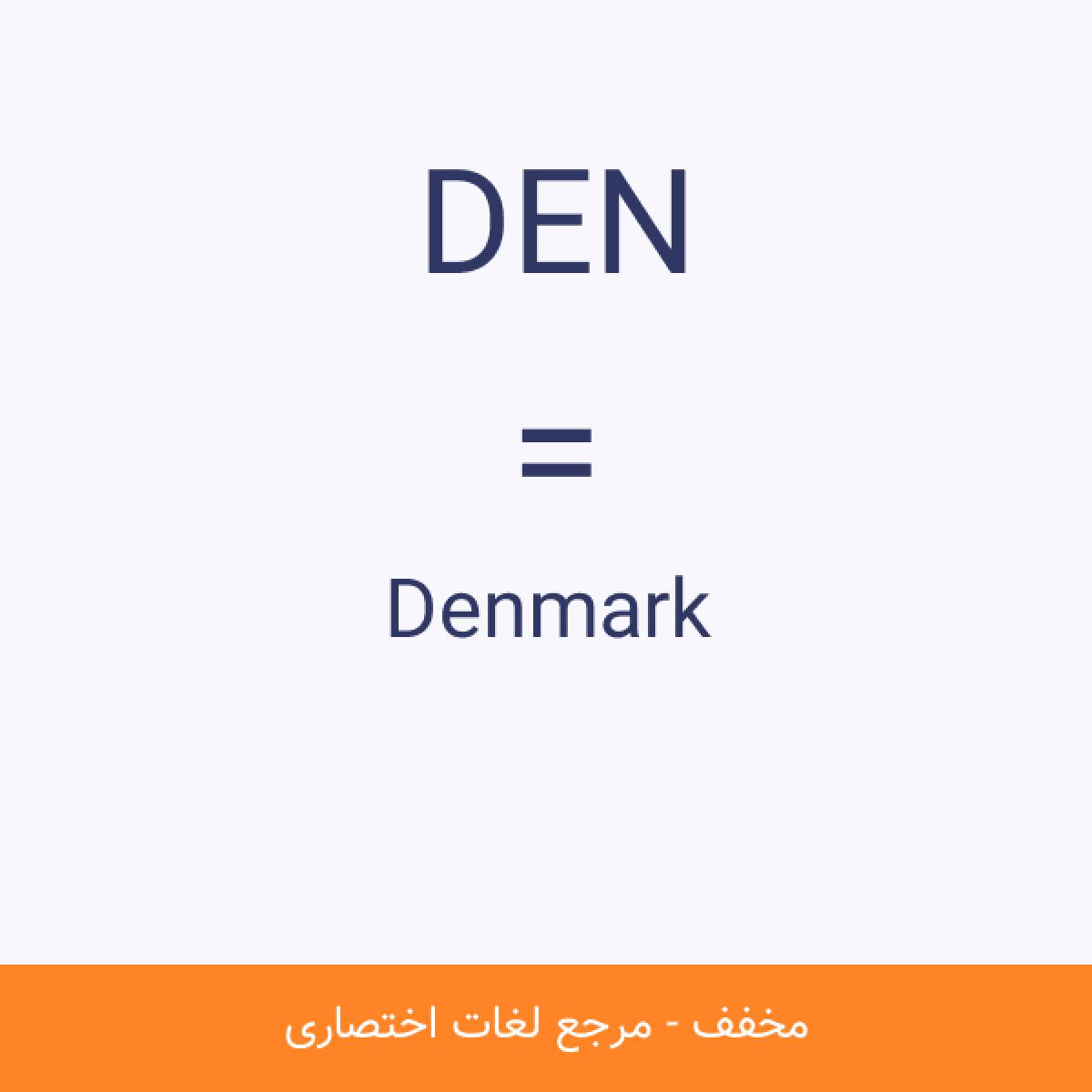 مخفف DEN Denmark تیم ملی فوتبال دانمارک یک تیم فوتبال بینالمللی است که به نمایندگی از کشور دانمارک به میدان میرود. این تیم زیر نظر فدراسیون فوتبال دانمارک فعالیت میکند.مشاهده نسخه کامل