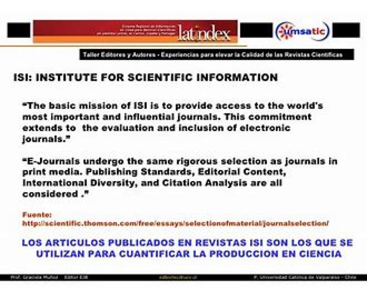 مؤسسهٔ اطلاعات علمی یا ISI در سال ۱۹۶۰ توسط یوجین گارفیلد تأسیس شد. این مؤسسه توسط مؤسسهٔ علمی تامسون در سال ۱۹۹۲ خریداری و بهعنوان Thomson ISI شناخته شد و اکنون نیز با نام Thomson Scientific شناخته شده است. این مؤسسه بخشی از شرکت Thomson Reuters است. مؤسسهٔ ISI خدمات مربوط به پایگاههای دادهٔ فهرست کتابها و مقالات را ارائه میدهد.