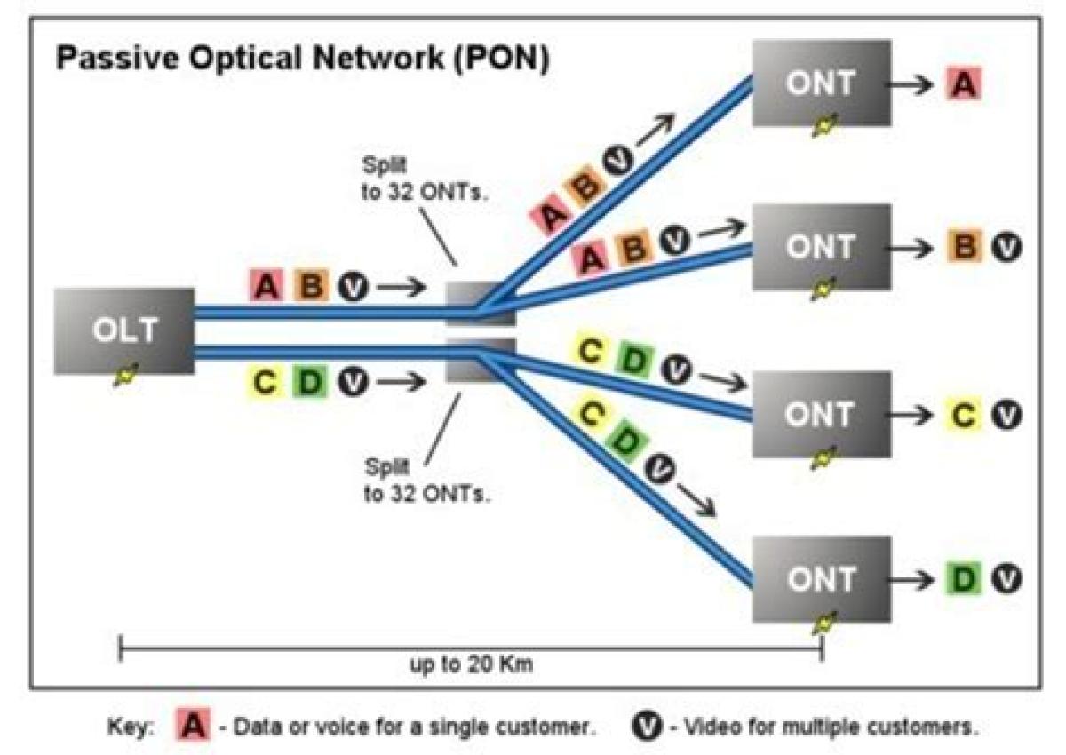 شبکه غیرفعال نوری (PON)، یک فناوری ارتباط از راه دور بوده که معماری آن هم‌بندی یک نقطه به چند نقطه را اجرا می‌کند. شبکه‌های پسیو نوری (PON) یک فناوری ارتباطها از راه دور است که پیاده‌سازی یک نقطه به چند نقطه و معماری است که در آن unpowered فیبر نوری ابزار استفاده می‌شود. در این شبکه‌ها یک فیبر نوری می‌تواند با استفاده از جداکننده یا اسپلیترهای فیبر نوری، که بدون نیاز به نیرو و به صورت غیرفعال پهنای باند فیبر را در میان نقطه‌های پایانی تقسیم می‌کند، به چندین نقطهٔ پایانی خدمت‌رسانی کند. برای فعال کردن یک فیبر نوری به خدمت چند پایان نقاط مانند مشتریان بدون نیاز به ارائه الیاف فردی بین هاب و مشتری است.