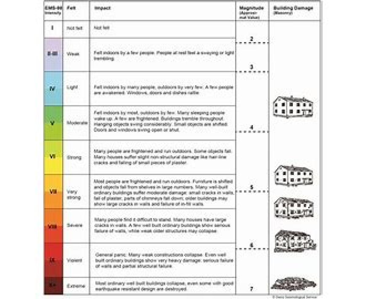 بر خلاف مقیاس‌های بزرگی زمین‌لرزه که بیانگر انرژی لرزه‌ای رهاشده توسط زمین‌لرزه می‌باشند، مقیاس مه‌لرزه‌ای اروپا شدت تأثیرات زمین‌لرزه بر روی یک مکان معین را مشخص می‌کند. این مقیاس دوازده درجه دارد که در ذیل مشروح آن‌ها می‌آید.
