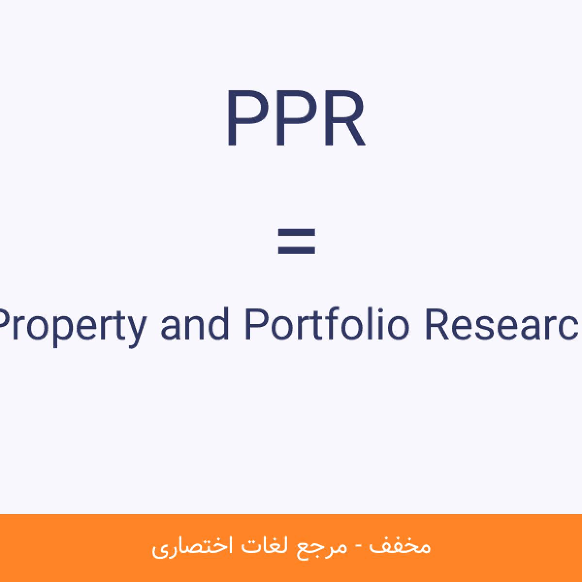 مخفف PPR Property and Portfolio Research نمونه کارها و تحقیقات (PPR)تخصص و تفکر هدف در تجزیه و تحلیل و پیش بینی بازارهای تجاری املاک و مستغلات را فراهم می کند .مشاهده نسخه کامل